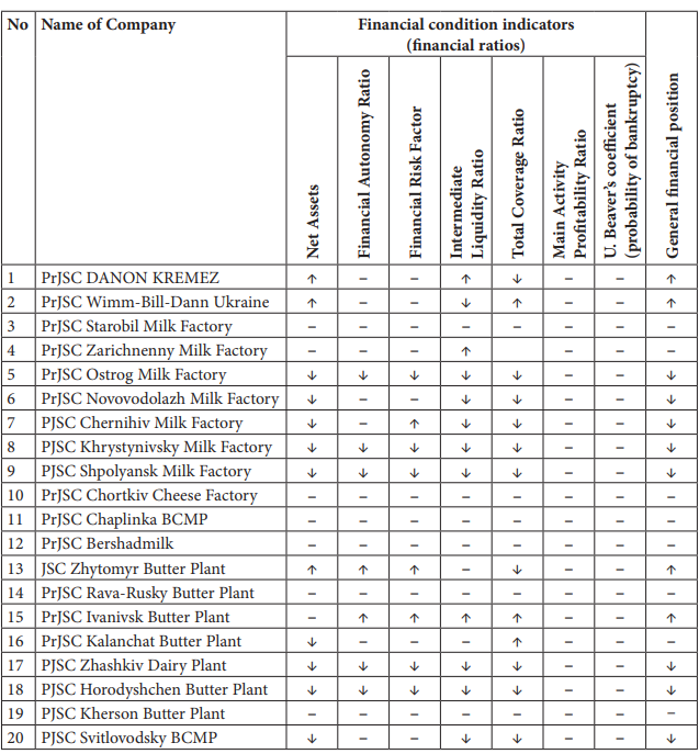 Table 3. The changes of the financial condition indicators (financial ratios) of enterprises (↑ — positive change; ↓ — negative change; – — no change)21