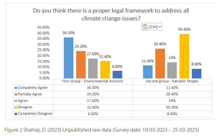 To enhance the research, we incorporated public opinions to understand how individuals perceive the field of climate change from a legal point of view. In our survey, we posed two questions: