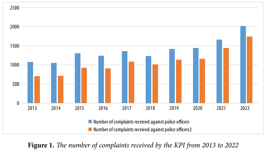 As for the structure of the KPI, it consists of the following departments: Complaints, Investigation, Inspection, Finance and General Services, Planning, Liaison, Legal and Information. The main activity of this mechanism is the investigation and inspection of the Kosovo Police. In the exercise of their functions, inspectors take measures to prevent, detect and document crimes committed by police officers. Notably, the KPI is a general supervisory body that investigates all police officers regardless of their rank, position or duties. Figure 1 presents statistical data on the number of complaints and investigative actions taken by the KPI for 2013-2022.29
